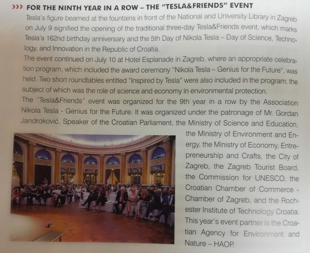 Work of the „Nikola Tesla – Genius for the future“ Association in AmCham's magazine NEWS&VIEWS. Presented „Tesla&friends“ manifestation 2018