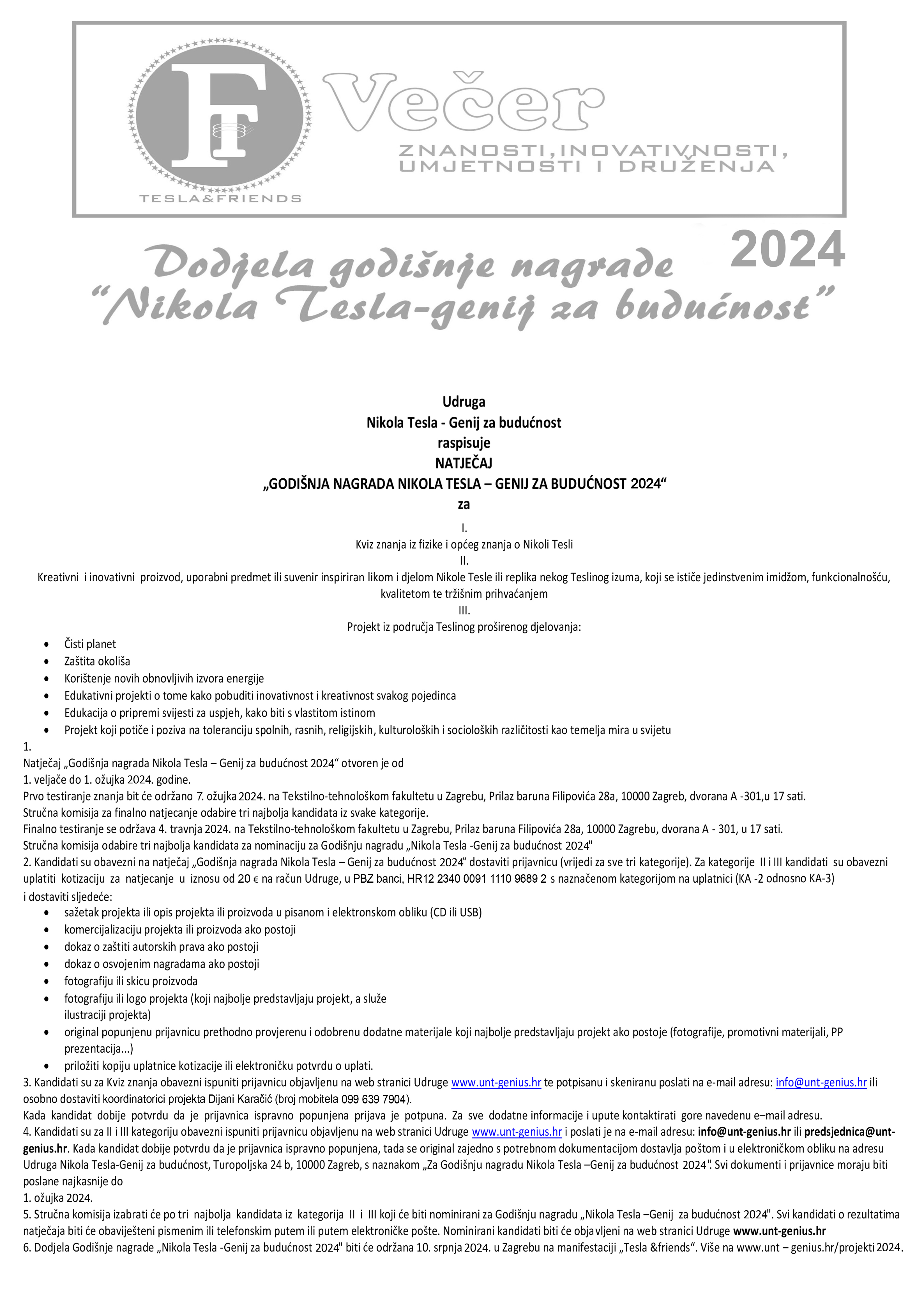 Natječaj-Godišnja nagrada 2024 - Udruga Nikola Tesla | Genij za budućnost